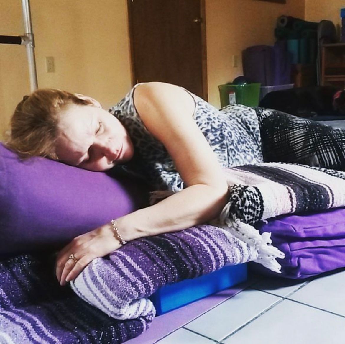 Humans need this practice for more optimal health and assisting with reducing our physical pain. Rest is necessary for healing from ailment, injury, or even progressive muscle gaining recovery. Restorative yoga is complementary to any movement practice. It is an extremely important practice for those who are experiencing feelings of overwhelm, anxiety, fatigue, or restlessness. By practicing down-regulating the nervous system to relax it will become easier to rest when the opportunity arises. This means you can more easily go to sleep at night if you know how to get yourself comfortable and breathe into relaxation.